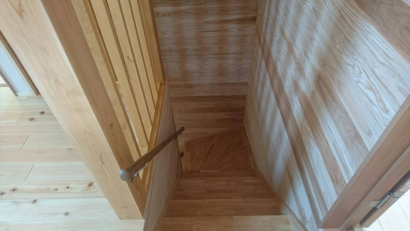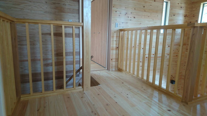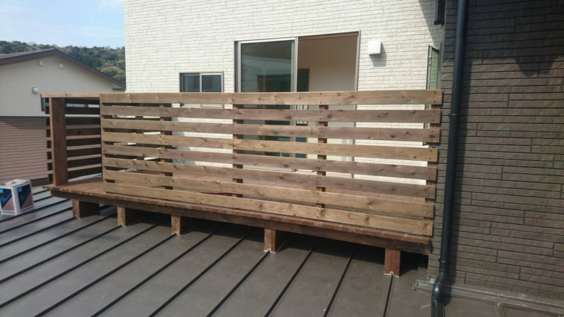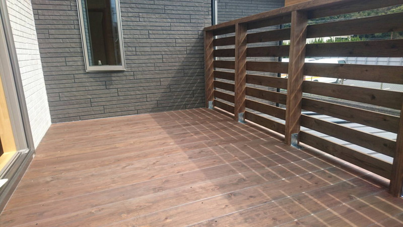 二階のウッドデッキは、当初アルミ製の予定でしたが、お客様の要望もあり木製にしました。外観にもよく合っており、費用もアルミ製の3分の1ほどになりました。
