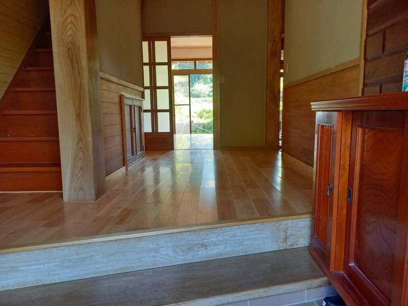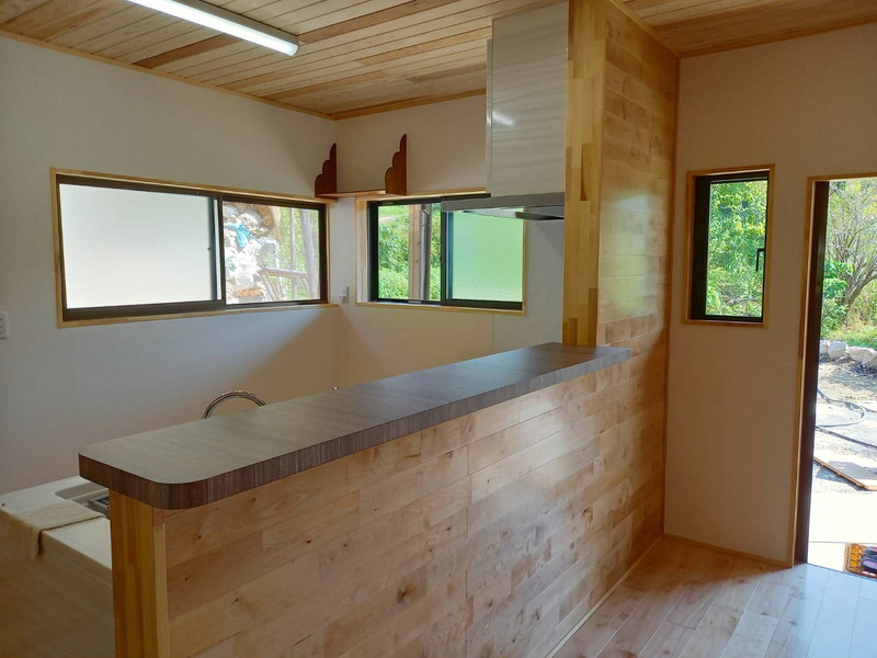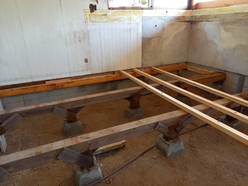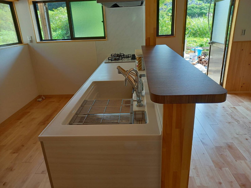 築40年のお家のリフォームです。床下に湿気がこもっていたため、キッチン床がフワフワになり沈んだ状態でした。床下の湿気対策として、南側に換気扇を設置し、晴れの日の温かく乾いた空気を床下に送り込むようにしました。換気扇は雨の日には自動でストップする優れものです。