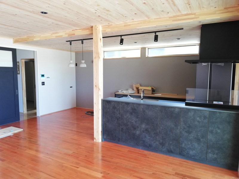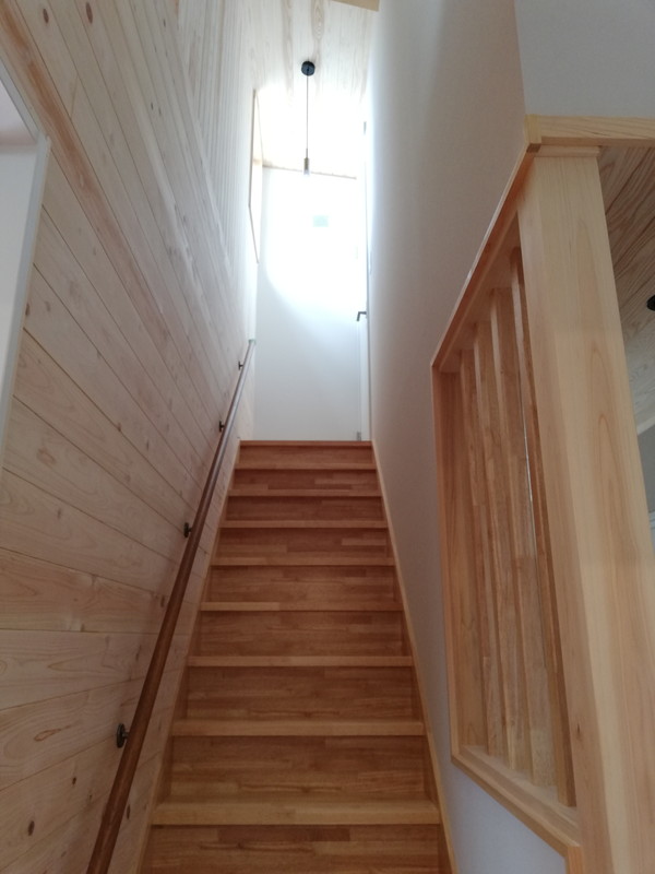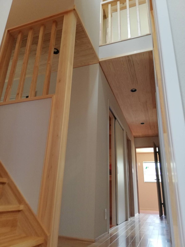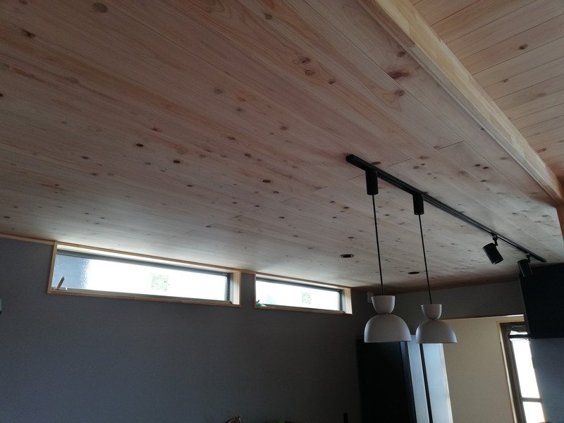 室内も無垢板を沢山使っています。特にLDKの天井には、通常より厚い15ミリのヒノキ材を使用しているので、調湿・消臭効果UPも期待できます。