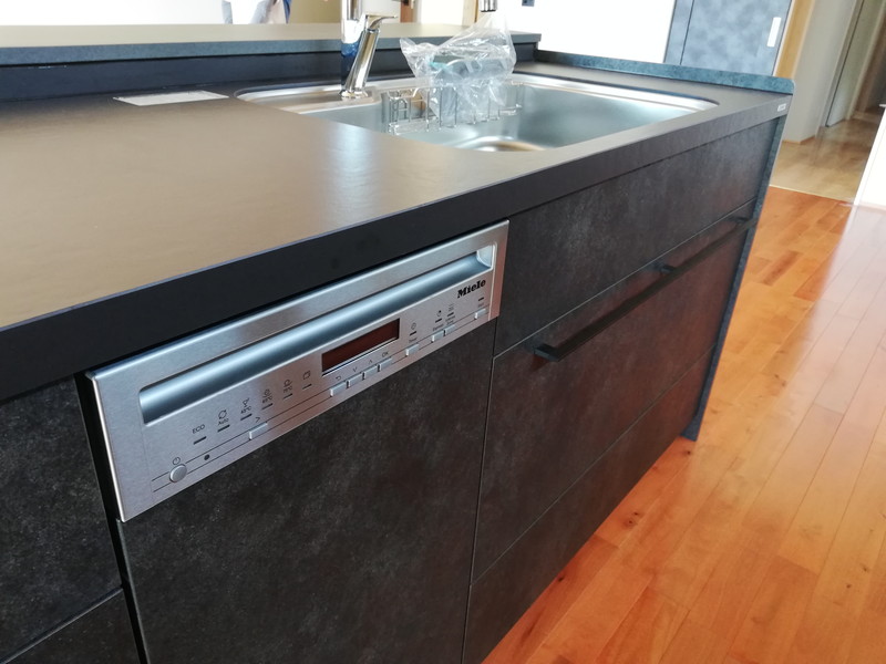 施主様こだわりのキッチンには、大人気ミーレの食洗機が入っています。天板はセラミックで見た目もカッコよく機能性も抜群です。
