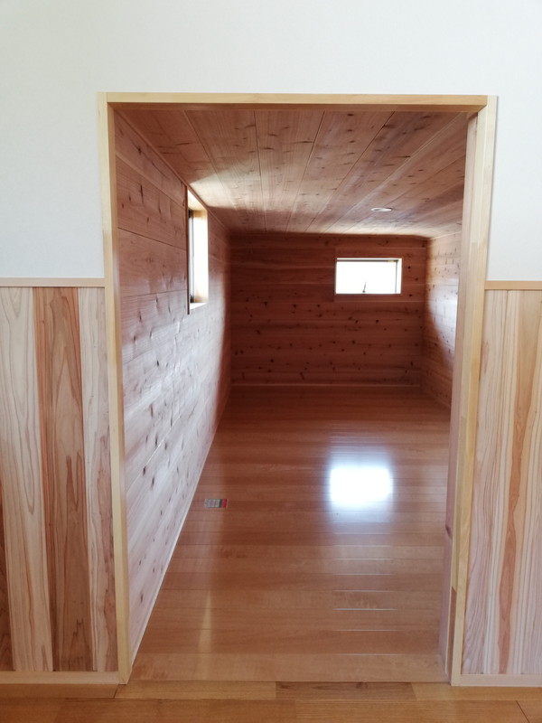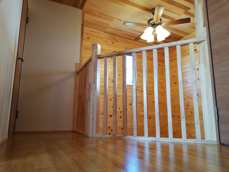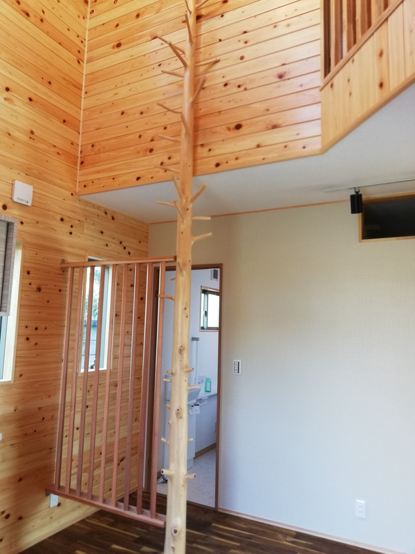 玄関の外回りと玄関ホールには、「タンゲサン」という大黒柱に使うような木材を使っており、色の濃淡が美しく、目を惹きます。